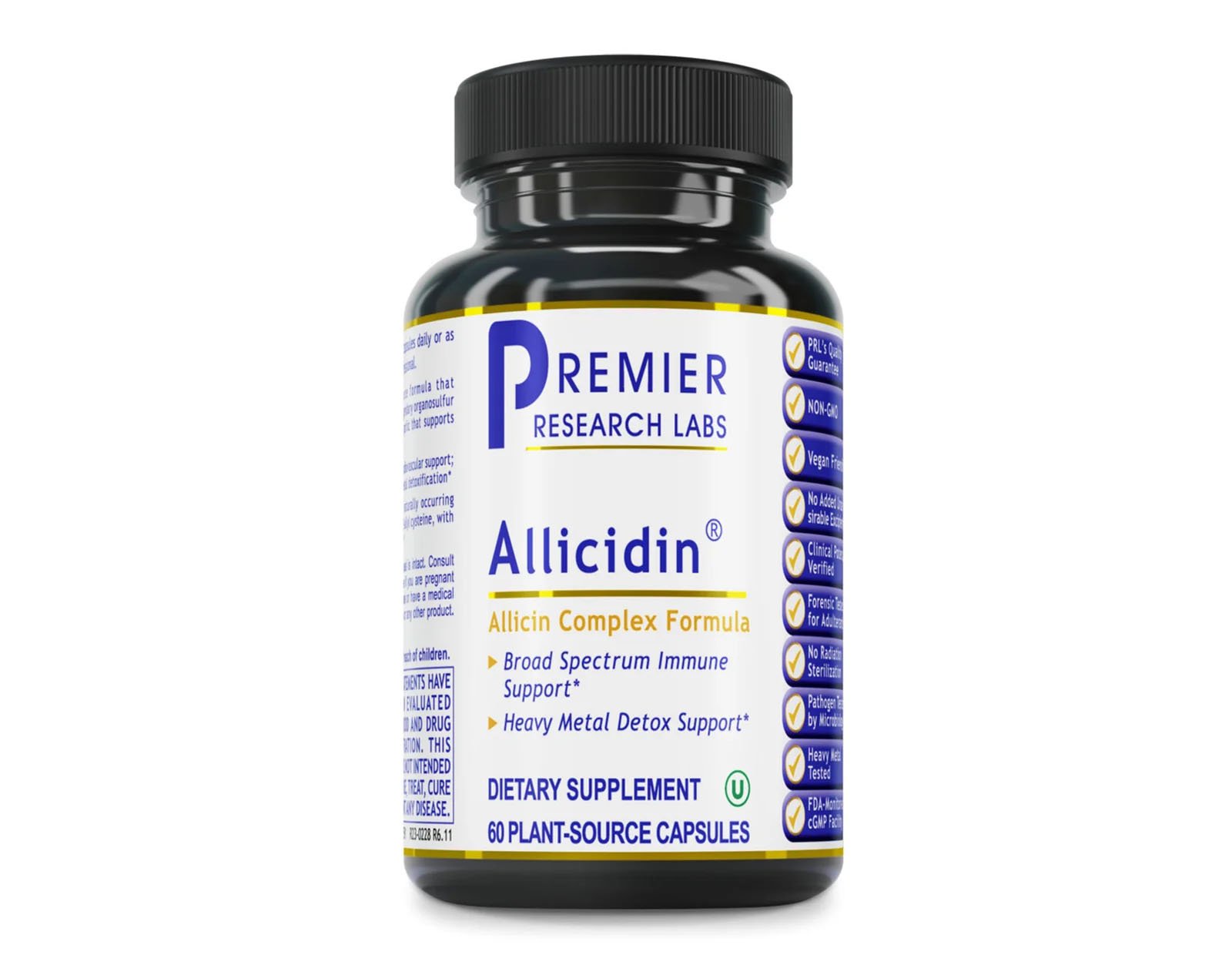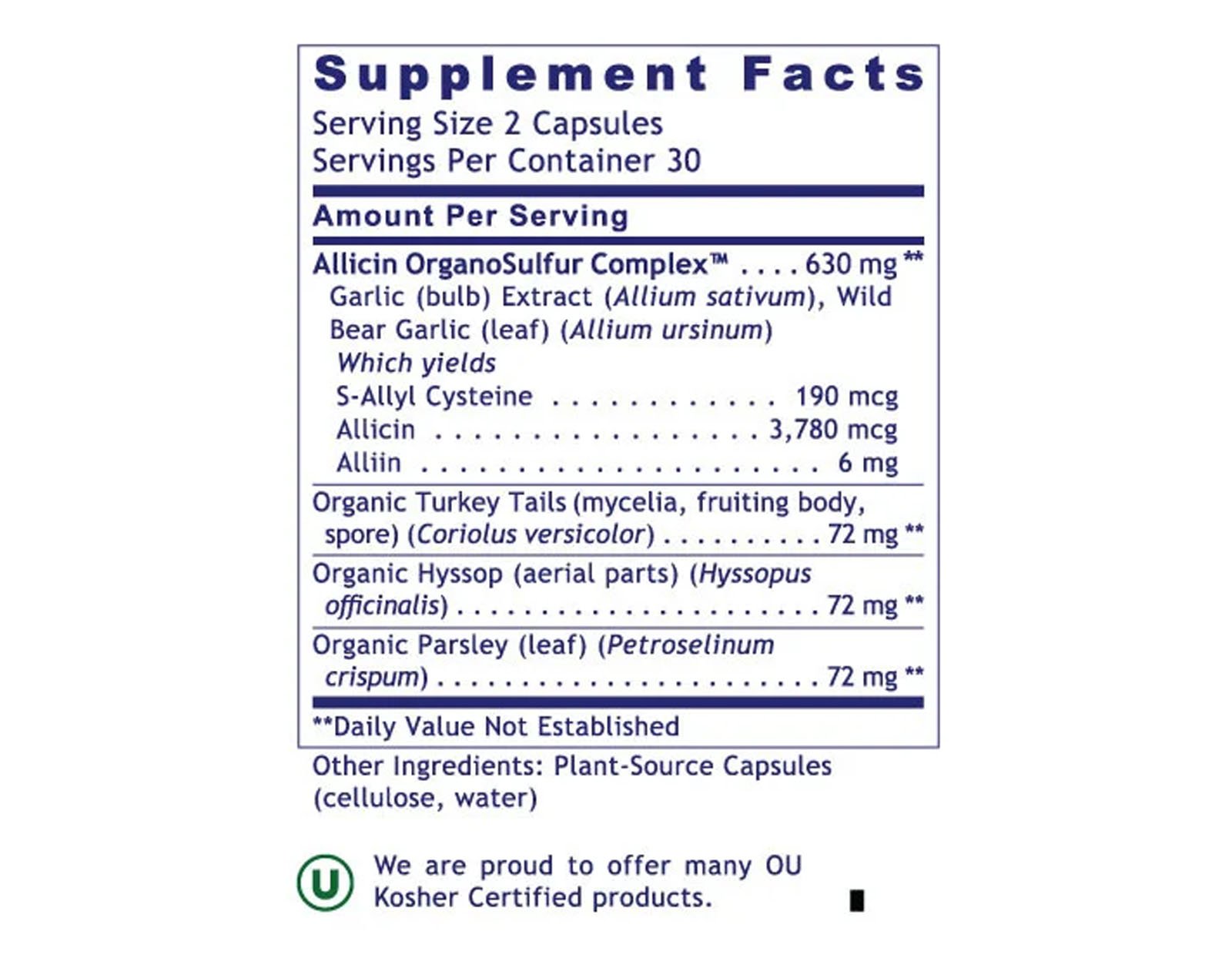 Many turn to Allicidin for their most important client needs. This product offers a broad-spectrum formula that showcases a premier quality garlic extract with a high, concentrated allicin content. This formula elegantly supports both immune and cardiovascular health. It is known for its Allicin Organosulfur Complex, which yields allicin—a legendary, concentrated organosulfur immune compound found in garlic. Allicin is activated in garlic when the fresh bulb is pressed, causing it to release the catalyzing enzyme, alliinase, which quickly converts alliin to the immune-active compound, allicin.