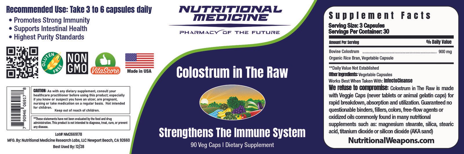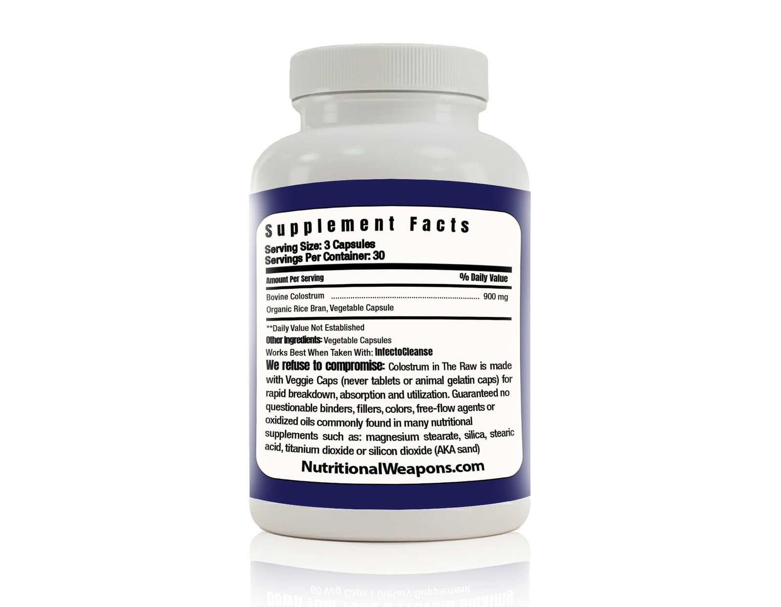 Colostrum in The Raw is made with Veggie Caps (never tablets or animal gelatin caps) for rapid breakdown, absorption, and utilization. Guaranteed no toxic tag-a-long binders, fillers, colors or free-flow agents commonly found in many nutritional products such as magnesium stearate, silica, stearic acid, titanium dioxide or silicon dioxide.